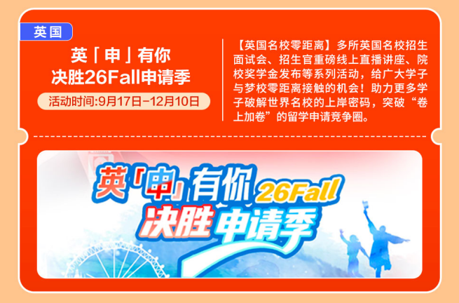 【英国名校零距离】多所英国名校招生面试会、招生官沉磅线上曲播、院校学金发布等系列勾当,